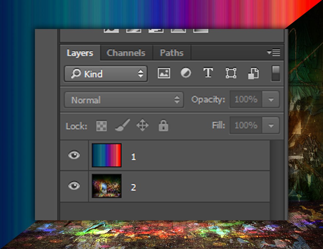Usei os blends modes dentro da camada 1, sendo assim, todo layout vai mudar de acordo com esta ordem de layers conforme a imagem acima.