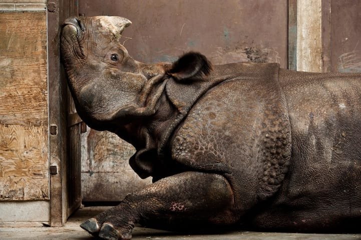 “Indian Rhino”, por Stephen De Lisle. Um rinocerante indiano preso em um zoológico de Toronto.