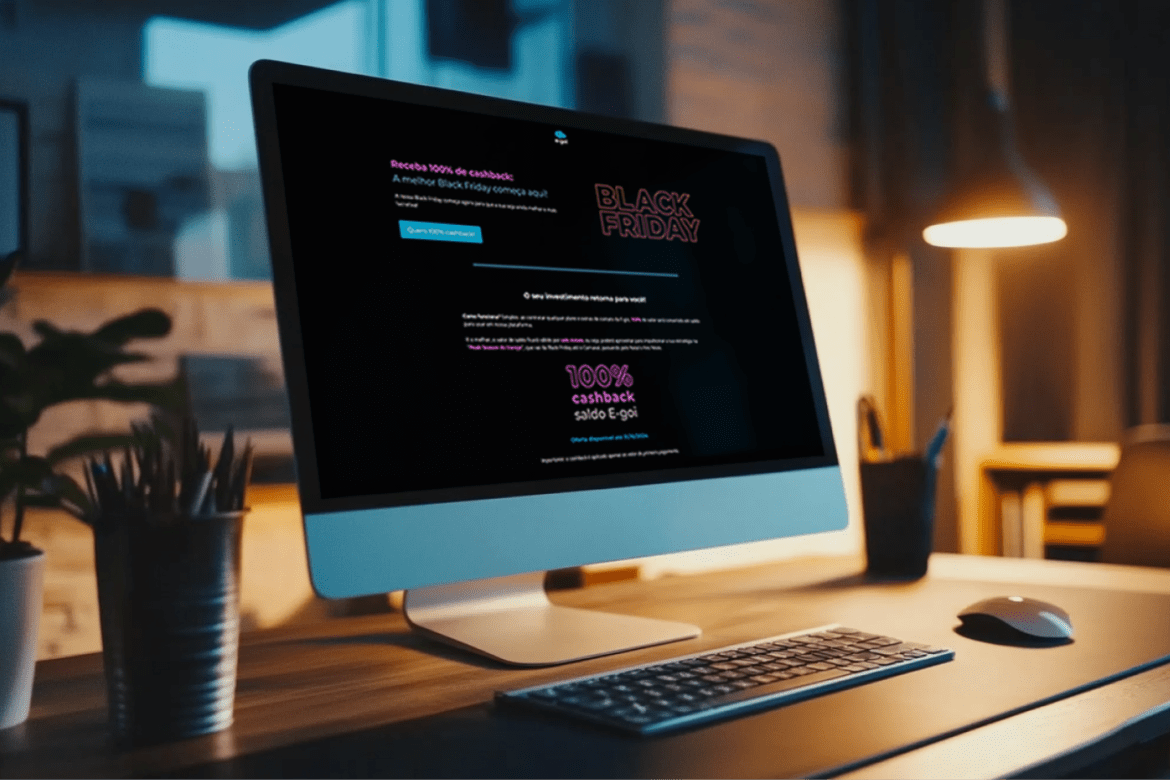 A oferta é válida para novas adesões na E-goi e o cashback se aplica apenas ao primeiro pagamento, seja ele mensal, trimestral, semestral, anual ou bianual. Para aproveitar a promoção, acesse o site: Black Friday E-goi 2024.