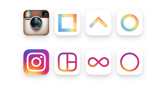 Em cinco anos de existência esse é o terceiro logo adotado pelo Instagram. O primeiro ícone era o desenho de uma câmera de verdade. O segundo, mais reconhecido pelos usuários, precisava ser mudado para dar lugar a uma nova identidade visual, que chega para refletir o sucesso e a evolução dessa nova fase do aplicativo. Todos os aplicativos da família do instagram também foram redesenhados, ganhando novo ícone que acompanha o novo padrão visual. São eles Layout, Hyperlapse e Boomerang.