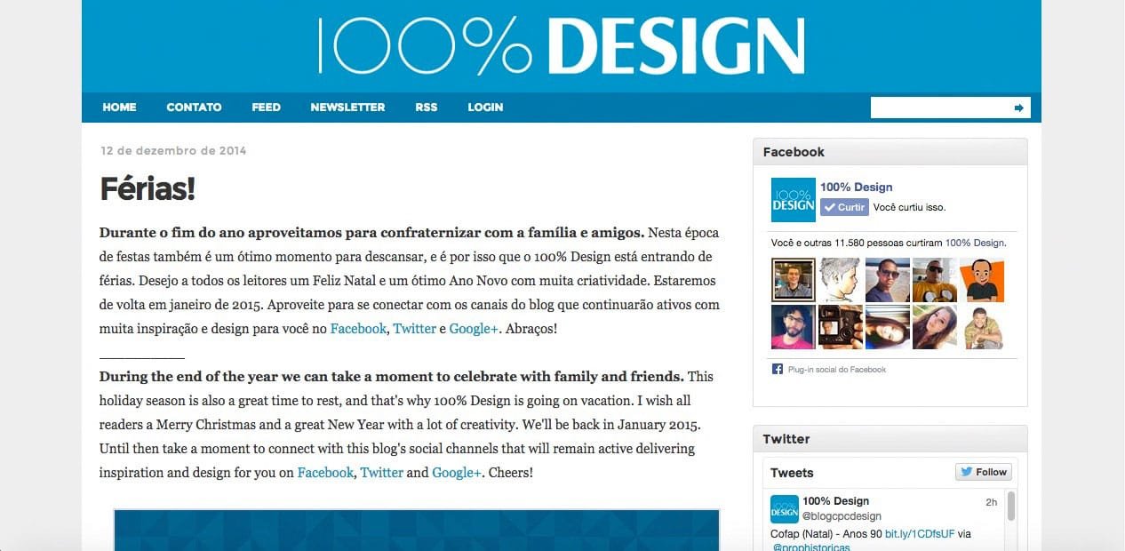 Na minha última postagem de 2014 não poderia deixar de destacar nossos colegas e parceiros. Foram tantos os blogs de design e comunicação que continuaram se destacando esse ano que eu não poderia deixar de render uma homenagem aos que nos ajudam. Um conteúdo especial e exclusivo para você que curte e aprecia esse blog, fechando o ano com uma mensagem de agradecimento e um desejo de boas festas a todos vocês que nos inspiram todo dia. E vamos a tão esperada lista: