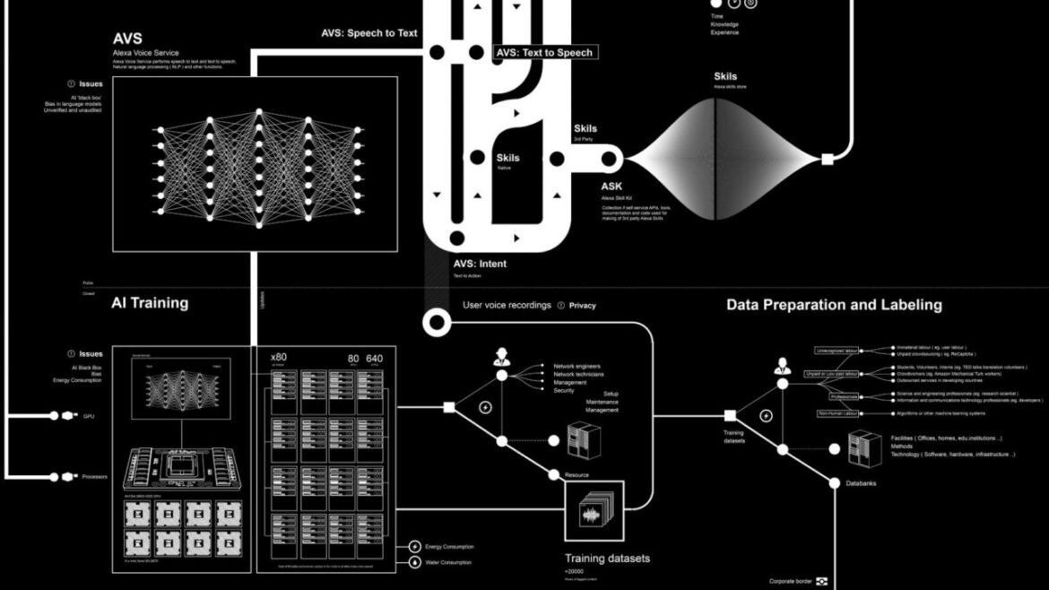 Da autoria de Kate Crawford e Vladan Joler, o projecto demonstra o impacto do dispositivo em escala global, desde a extração de metais da terra necessária para construí-lo e os efeitos ambientais resultantes, até os dados pessoais sobre o usuário que o dispositivo reúne.