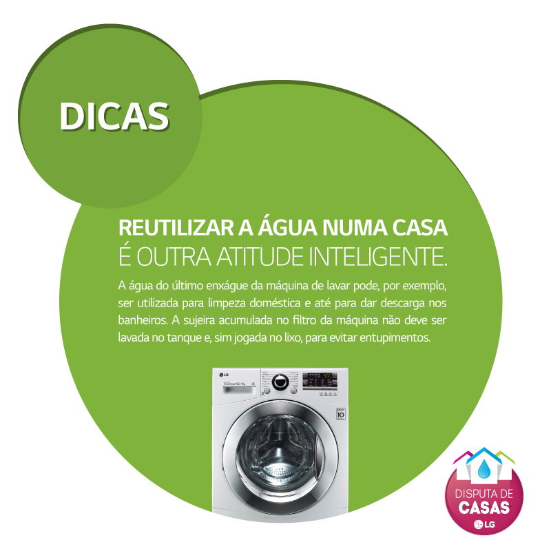 A LG Eletronics, conhecida mundialmente por sempre agregar tecnologia e inovação a seus produtos, ultimamente tem ganhado destaque por sua preocupação ambiental. A pouco tempo lançou a Campanha pela Economia de Água, a proposta era estimular novos hábitos de consumo consciente na população paulistana. Para isso em parceria com a Sabesp, uma empresa de economia mista responsável pelo fornecimento de água, coleta e tratamento de esgotos de 363 municípios do Estado de São Paulo, a LG iniciou o projeto Disputa de Casas. A partir desse Projeto seriam implementadas atividades de reeducação, por meio de palestras educativas aos participantes, visitas quinzenais, acompanhamento telefônico e distribuição de materiais com dicas de economia que mostrassem como pequenas mudanças na rotina aliadas a tecnologia podem ajudar a poupar muita água. Ao final as 50 residências com maior redução de consumo de água seriam premiadas.