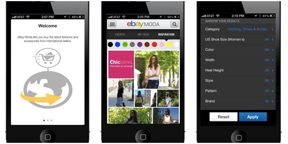 A mega empresa eBay chega ao Brasil e apresenta um app sobre moda. O App traz marcas e produtos do mundo que podem ser comprados pelos usuários brasileiros  e pode exibir valores em reale e dólar pelo paypal.