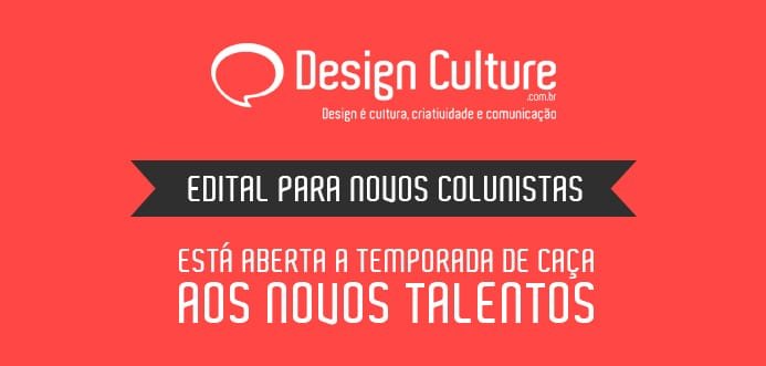 - Envie sua matéria (em Word ou PDF), assuntos que deseja abordar no blog e um resumo de sua vida profissional ou acadêmica para: contato@designculture.com.br com o título da mensagem: Colunista Design Culture;