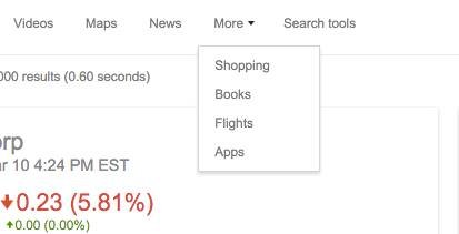 Além de um site, o Flights também está na barra de segmentação da pesquisa.