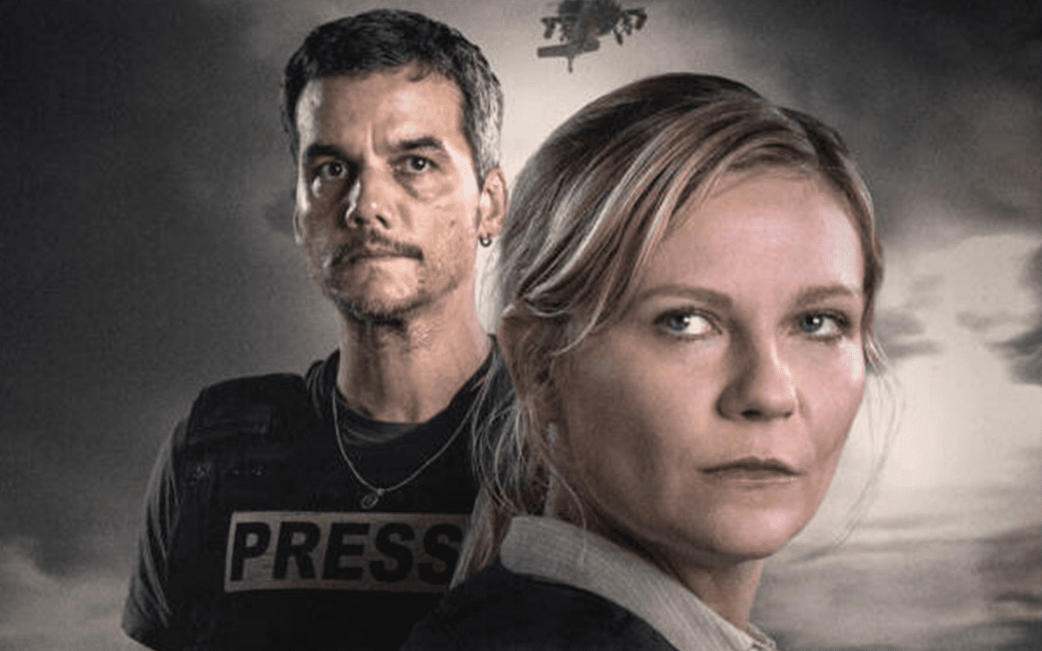 Logo nos primeiros minutos do longa metragem Guerra Civil já diz ao que veio! colocando o espectador numa situação de conflito entre a população e o exército. E apresentando o casal de protagonistas Lee (Kirsten Dunst) e Joe (Wagner Moura), uma fotógrafa de campo/guerra e um jornalista amante por registrar e vivenciar momentos de guerra. Ambos têm o objetivo de entrevistar o presidente antes dele ter a sua queda e registrar seus últimos momentos em Washington D.C. Com isso, em meio ao caos, eles encontram uma jovem jornalista iniciante chamada Jessica (Cailee Spaeny), que segue os passos de Lee como profissional e busca ser igual a ela no futuro, que acaba embarcando nessa viagem para se provar como jornalista de guerra. O último integrante que é apresentado é Sammy (Stephen Henderson) um velho amigo de jornalismo dos protagonistas que insiste em ir junto com eles nesta viagem para Washington D.C com medo do que possa acontecer com seus amigos de profissão.