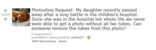 Ser Designer e trabalhar bem com ferramentas como o Photoshop pode ser uma boa oportunidade para sermos humanos e gentis. O Americano Nathan Steffel em 2014 passou por uma situação difícil: perder sua pequena filha Sophia de apenas 6 semanas. Nathan, havia tirado uma foto de sua filha ainda hospital porém encubada e pediu aos internautas que retocassem a única foto que tinha, a ação foi emocionante e movimentou dezenas de pessoas para ajudar.