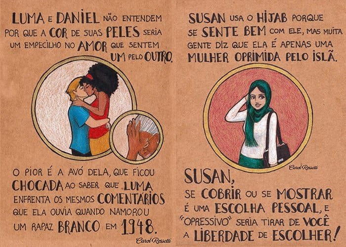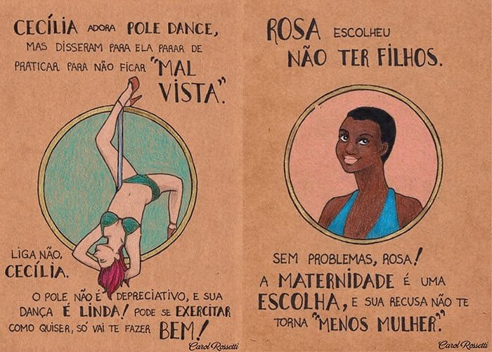 E, para inspirar, convido vocês a conhecerem o excelente trabalho de Carol Rossetti. Com um desenho diferenciado e mensagens diretas, a ilustradora mineira encontrou uma ótima forma de se expressar a fim de tentar quebrar diversos preconceitos.