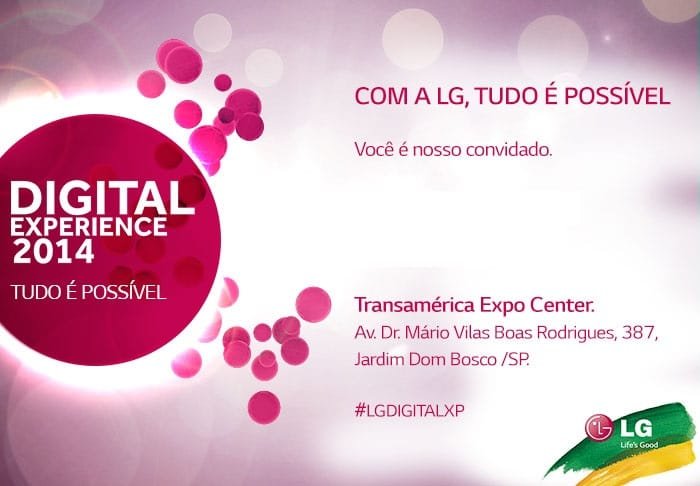 O mais importante evento da LG Electronics do Brasil – o Digital Experience – chega em sua 10ª edição com a maior estrutura e investimento de todos os tempos. No dia 26 de março, das 14h às 21h, no Expo Transamérica, em São Paulo, os amantes da tecnologia poderão conferir, ao vivo, as tendências e os últimos lançamentos da empresa.