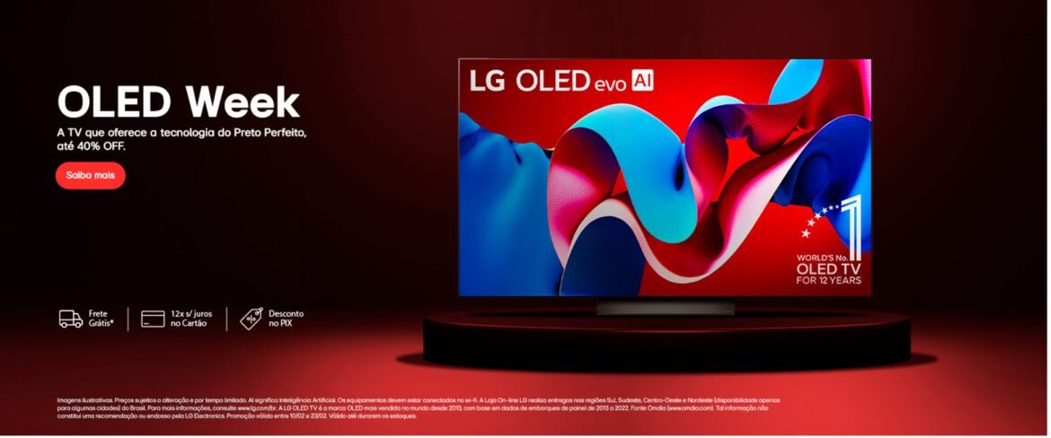 Entre os dias 10 e 23 de fevereiro, os consumidores poderão garantir uma smart TV LG OLED evo na loja online e em lojas parceiras da marca com condições especiais que garantem até 40% de desconto, a depender do modelo e canal de compra.