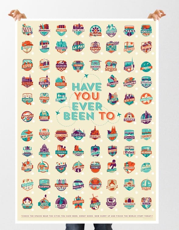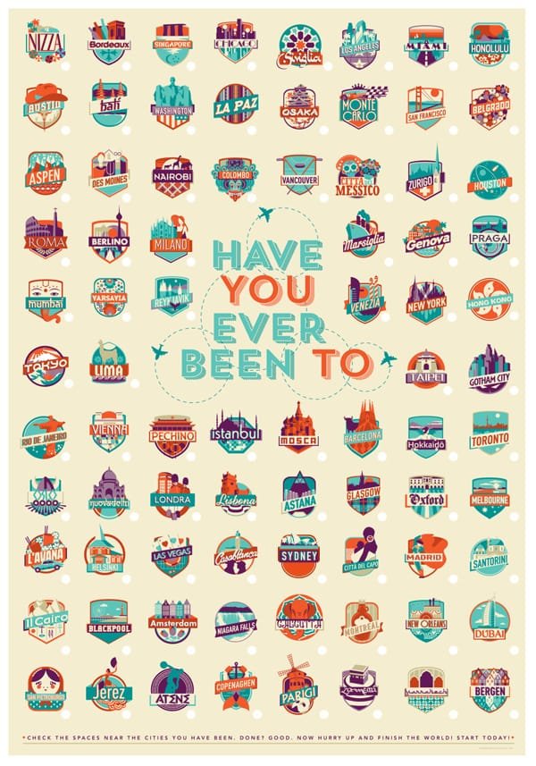 Federica Bonfanti é uma criativa Designer e ilustradora inglesa que criou um cartaz com emblemas de cidades que você precisa conhecer durante sua vida, ao lado de cada um deles há um espaço para marcar sua viagem.