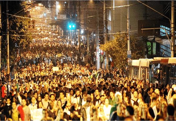Falando em capitalismo e ironia, quase todas frases de ordem entoadas ou desenhadas em cartaz possuía um pouco dos dois. Com muito humor, característico dos brasileiros, os bordões publicitários e as marcas foram apropriadas para protesto. Há quem diga que isso demonstra uma sociedade extremamente liga ao consumo. O que de fato é verdade. Mas isso me lembra, e muito, o Abaporu de Tarsila, o “homem que come gente” que agora é também um homem que consome.