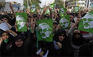 Aqui, já temos um Protesto iraniano contra a suposta fraude nas eleições presidenciais de 2009 e a favor do líder da oposição Mir Hossein Mousavi. Vou deixar a análise do rostinho estilizado por conta de vocês.