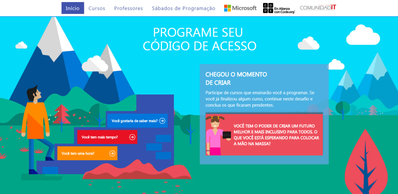 A Microsoft criou recentemente um site onde é possível ter contato com todos os principais movimentos a serem feitos na hora de programar. A campanha se chama #EuPossoProgramar e tem a intenção que ensinar aos jovens e a qualquer pessoa interessada a linguagem dos computadores, como HTML, e também a publicar aplicativos ou sites.