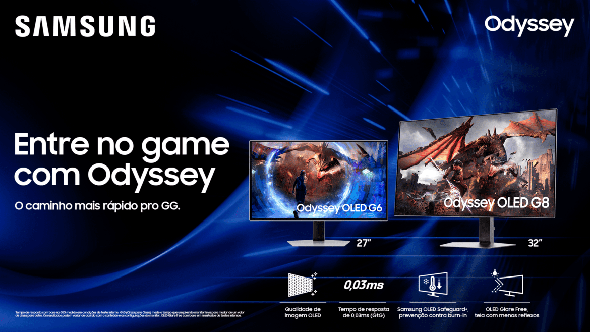 Para saber mais sobre os monitores Odyssey OLED G6 e OLED G8, acesse a Loja Online da Samsung e fique de olho na Samsung Newsroom Brasil para mais novidades sobre a marca.