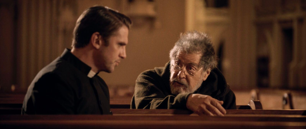 Na trama, acompanhamos o Padre Joseph (Don Stevens), lutando para superar a perda do seu irmão, enquanto luta para salvar a vida de Emma (Abigail Cowen), junto ao padre Theophilus (Al Pacino), de um possessão de demônios e espíritos, enquanto debatem sobre crença, fé e dilemas pessoais. Mas toda essa trama é simples, vomitada de qualquer jeito, não estabelece como a jovem ficou assim, seus traumas, e medos para sentirmos a dor dela. O padre Joseph, vem com uma proposta de questionar a fé e o sobrenatural, além da culpa, mas nada disso é mostrado para nós, é simplesmente falado, e falado, o tempo todo, além de “momentos emocionais” pífios, para tentar passar alguma emoção. E a mesma coisa vale para os demais personagens, eles tem suas questões, seus medos, mas nada é realmente desenvolvido. A trama da Irmã Rose (Ashley Greene), é tão mal construída, que ela sente raiva da menina por ter atacado ela, mesmo sabendo que a culpa não é dela, e fala isso na cara dura. Além da “tensão sexual” dela com o padre, que é uma cena, um olhar, e pronto, questionando minha vocação pelo padre.