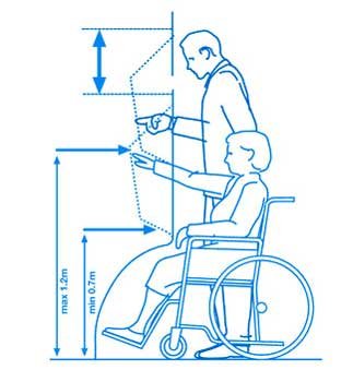 O espaço fornecido para aproximação, uso, alcance e manipulação deve ser apropriado independentemente do tamanho do corpo do usuário, postura ou mobilidade. Deve fornecer uma visão clara de elementos importantes e acesso a todos os elementos, independentemente do usuário estar sentado ou em pé, e proporcionar espaço apropriado para a utilização de ferramentas de auxílio ou assistência pessoal (ex.: cadeira de rodas).