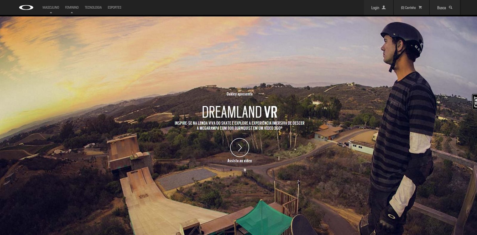 Para lançar a parceria, a Oakley criou uma experiência inovadora de realidade virtual, imersiva em 360º, o “Dreamland VR” – leva os consumidores para uma volta na Megarampa, construída por Bob Burnquist na Dreamland, na Califórnia, em primeira pessoa. A cativante experiência traz à vida a adrenalina de descer uma das rampas mais temidas do mundo, enquanto mostra as obsessões e pensamentos que moldaram a carreira do atleta.